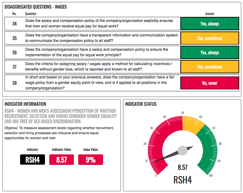 Having a unified measuring system allows organisations to have comparative scenarios at a sector-wide, national and regional level. The periodicity of the system allows each organization to construct active mapping of their own evolution in terms of gender gaps, which facilitates the closure of said gaps by providing concrete goals. Similarly, EQUALITY@WORK, in addition to having comparable variables across countries, constitutes a primary source of information that helps to build sector/industry benchmarks based on sex-disaggregated KPIs to track gender equality in the workplace.